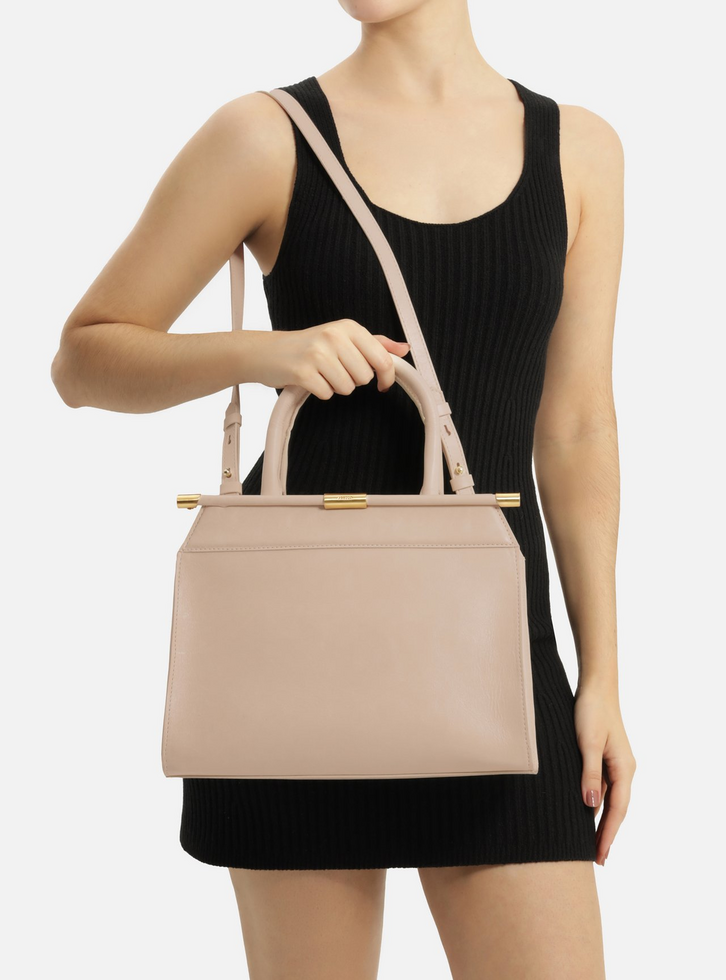 Bolsa tote feminina grande branca em couro. O acessório tem formato estruturado e acabamento liso e macio, com recorte geométrico na parte superior da capa e tira rolotê com detalhes metálicos. Traz duas alças de mão estruturadas e alça lateral longa com regulagem. Possui fecho superior em zíper com puxador e interior forrado.