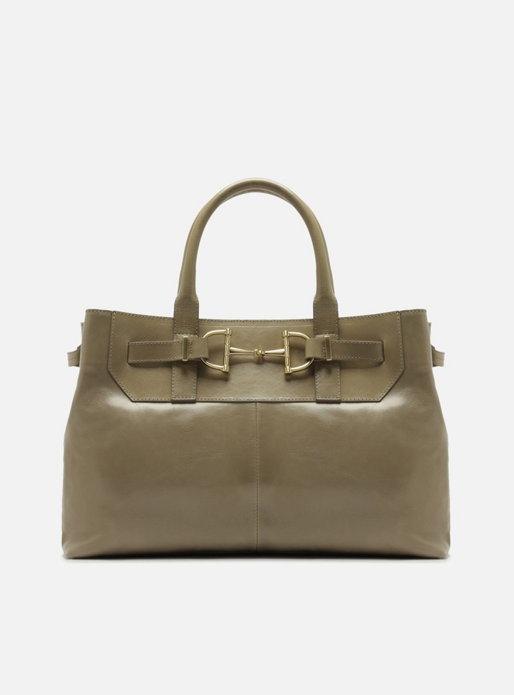 Bolsa tote feminina grande cinza em couro com efeito desgastado. O acessório tem formato estruturado e retangular e acabamento macio. Traz alças de mão e alça longa regulável em couro. Possui detalhe em tira transpassada na parte superior com metal estilo bridão e fecho interno em zíper. Com interior forrado.