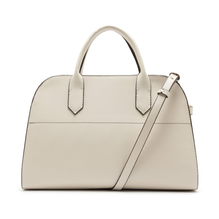 Bolsa tote Helena grande, com detalhe em zíper, na cor branca. De material similar ao couro, o modelo tem shape sofisticado e estruturado - com acabamento de costura ornamental contrastante, em tom café, por toda a peça. Traz alças de mão fixas e uma alça transversal, regulável e removível - com acabamento a fio nos contornos. Possui fechamento superior em zíper. Forrada na parte interna, com bolsinho flat e etiqueta personalizada Anacapri, com a frase: “leve a vida numa bolsa”. A bolsa apresenta laterais com detalhe de maxi fivela imponente e assinatura Anacapri em carimbo metálico, na parte inferior da lateral.