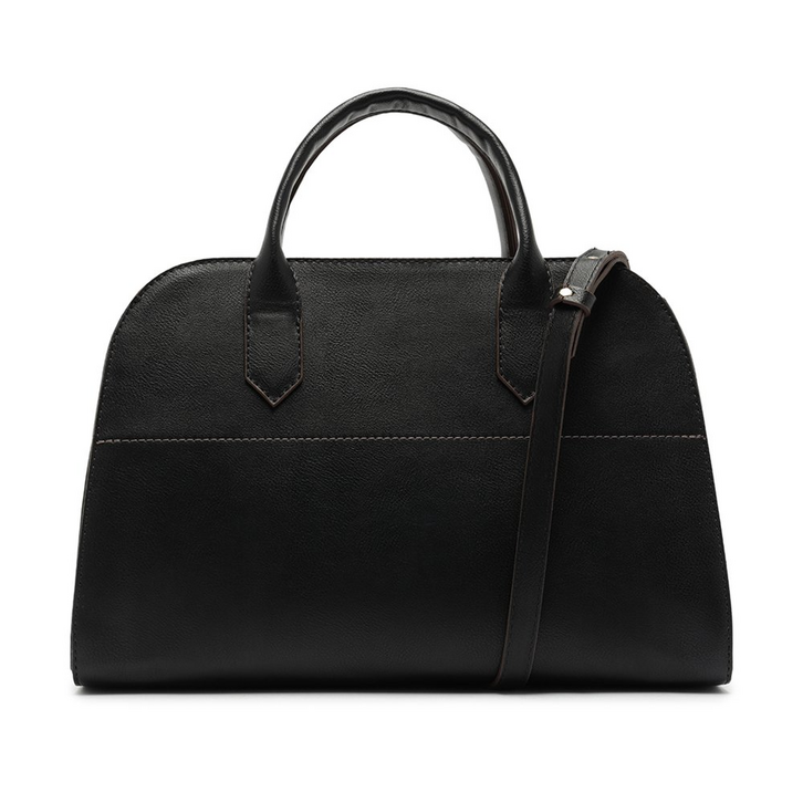 Bolsa tote Helena grande, com detalhe em zíper, na cor preta. De material similar ao couro, o modelo tem shape sofisticado e estruturado - com acabamento de costura ornamental contrastante, em tom café, por toda a peça. Traz alças de mão fixas e uma alça transversal, regulável e removível - com acabamento a fio nos contornos. Possui fechamento superior em zíper. Forrada na parte interna, com bolsinho flat e etiqueta personalizada Anacapri, com a frase: “leve a vida numa bolsa”. A bolsa apresenta laterais com detalhe de maxi fivela imponente e assinatura Anacapri em carimbo metálico, na parte inferior da lateral.
