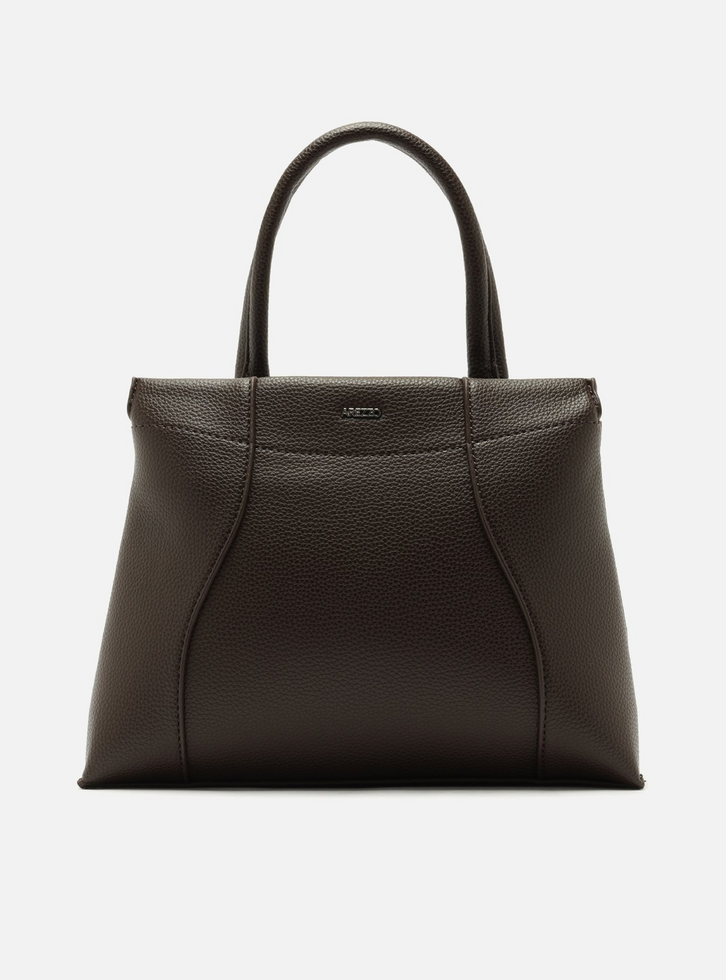 Bolsa feminina tote média marrom. O acessório tem formato estruturado, acabamento texturizado e duas alças de mão. Possui amplo espaço interno e fechamento em zíper. Traz detalhe discreto do nome da marca na parte frontal.
