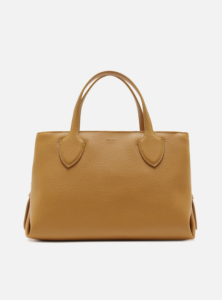 Bolsa tote grande marrom. O acessório tem formato estruturado e acabamento texturizado. Traz duas alças estruturadas com porta-alça na capa e alça lateral longa regulável. Possui divisória interna e fecho superior em zíper, além do nome da marca na capa. Detalhe nas laterais com base dobrada e tiras com fivelas.