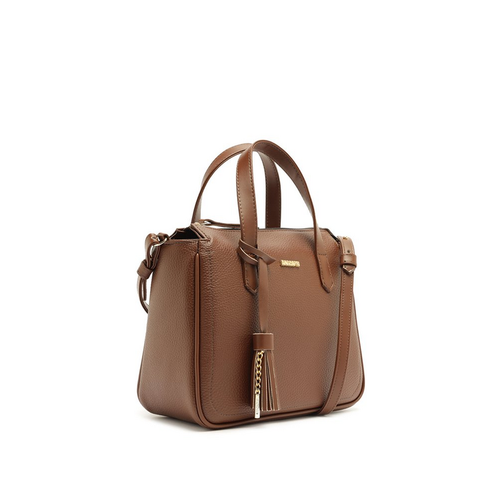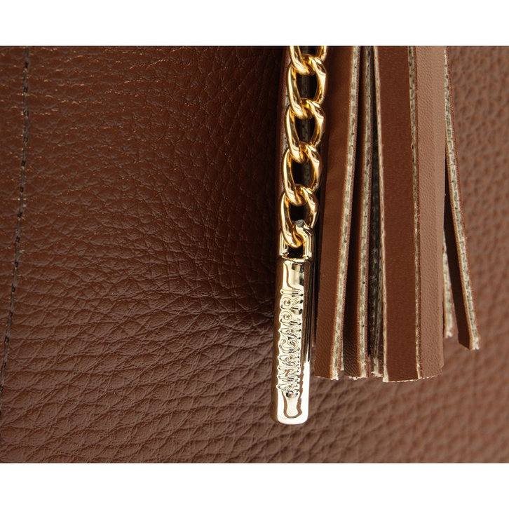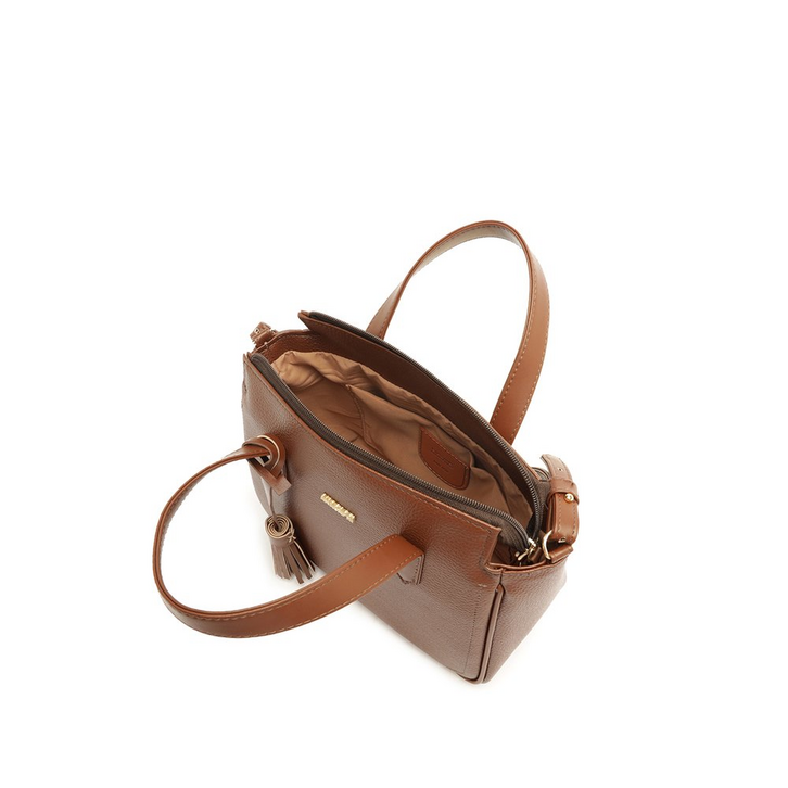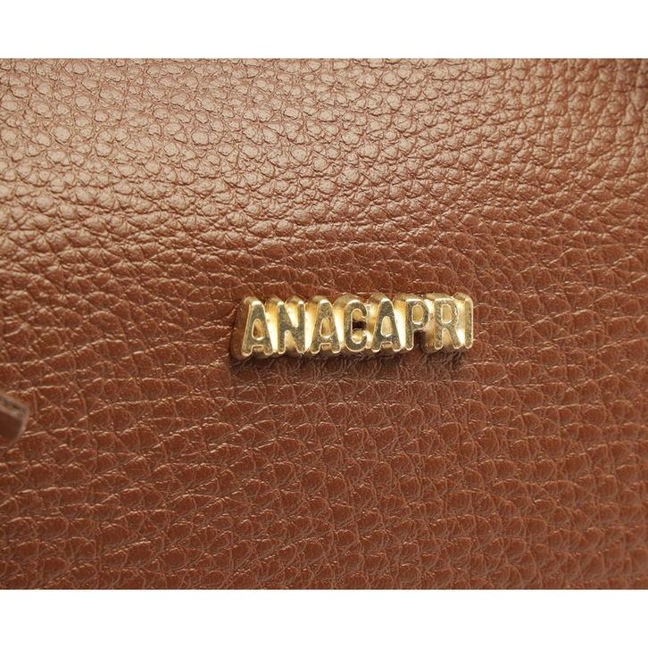 Bolsa Tote Média Bag Charm Marrom. O modelo tem shape retangular estruturado com cantoneiras arredondadas, contornado em fita. Possui fecho superior em zíper com puxador em tira. Com alça longa transversal regulável e alças de mão, apresenta detalhe em costura ornamental e aplicação de pin metálico com assinatura Anacapri na capa frontal. Com bolsinho interno para acomodar pequenos itens, o modelo acompanha bag charm metálico Anacapri removível. O acessório pode ser usado separadamente da bolsa.