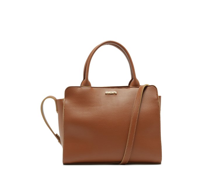 Bolsa tote Anacapri básica marrom. No tamanho M, possui alça longa em tira transversal regulável e duas alças de mão reforçadas. O modelo quadrado apresenta shape moderno e estruturado, com fecho superior em zíper e puxador em tira. Forrada na parte interna, traz assinatura Anacapri em pin metálico aplicado na capa frontal.