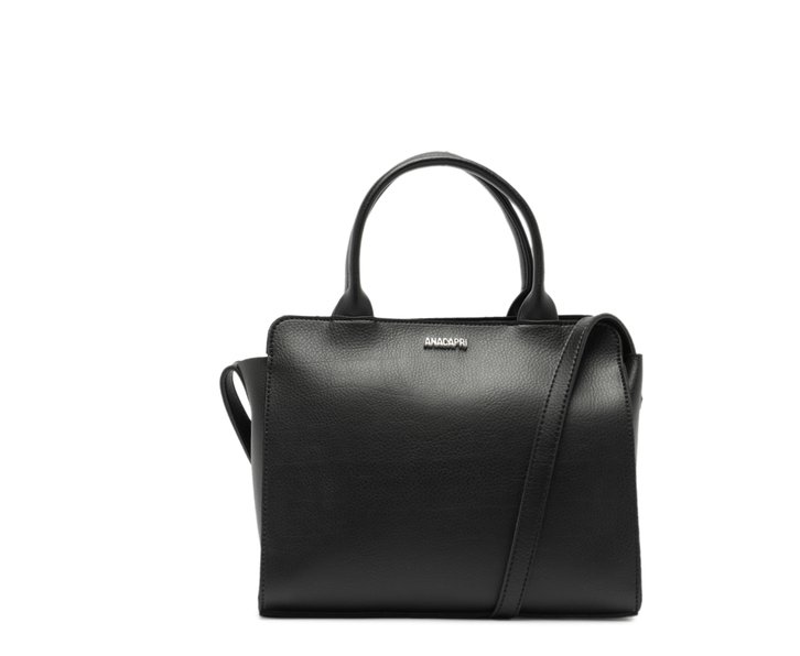 Bolsa tote Anacapri básica preta. No tamanho M, possui alça longa em tira transversal regulável e duas alças de mão reforçadas. O modelo quadrado apresenta shape moderno e estruturado, com fecho superior em zíper e puxador em tira. Forrada na parte interna, traz assinatura Anacapri em pin metálico aplicado na capa frontal.