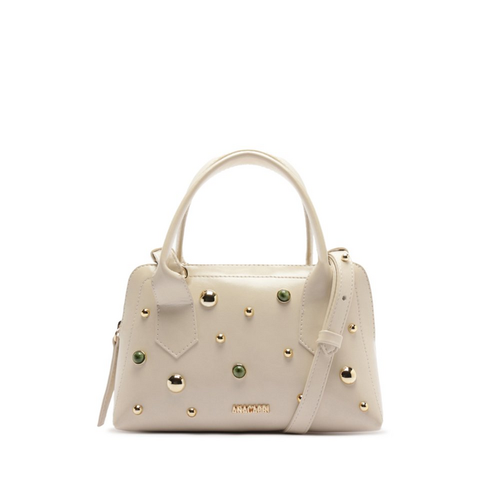 Porque Apostar: A bolsa tote vem para os dias ensolarados e vibrantes da temporada de Verão’26 Anacapri, cheia de bossa. Urbana, moderna e prática, o shape mini permite inúmeras combinações. O charme fica por conta do toque moderno e poderoso que a pedraria com resina colorida e os studs agregam para esse modelinho! <3