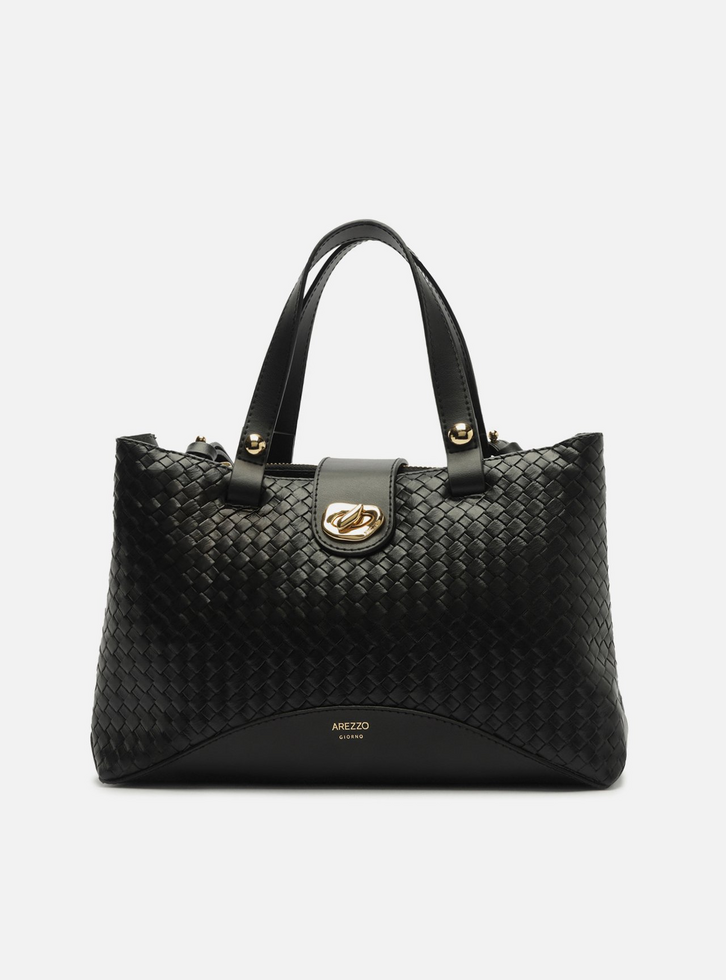 Bolsa tote grande preta. O acessório tem formato estruturado e acabamento em tressê nas capas. Traz duas alças de mão e alça tiracolo regulável. Possui fecho em encaixe frontal com lapela e peça metálica orgânica. Com divisórias internas e bolso com fecho em zíper.