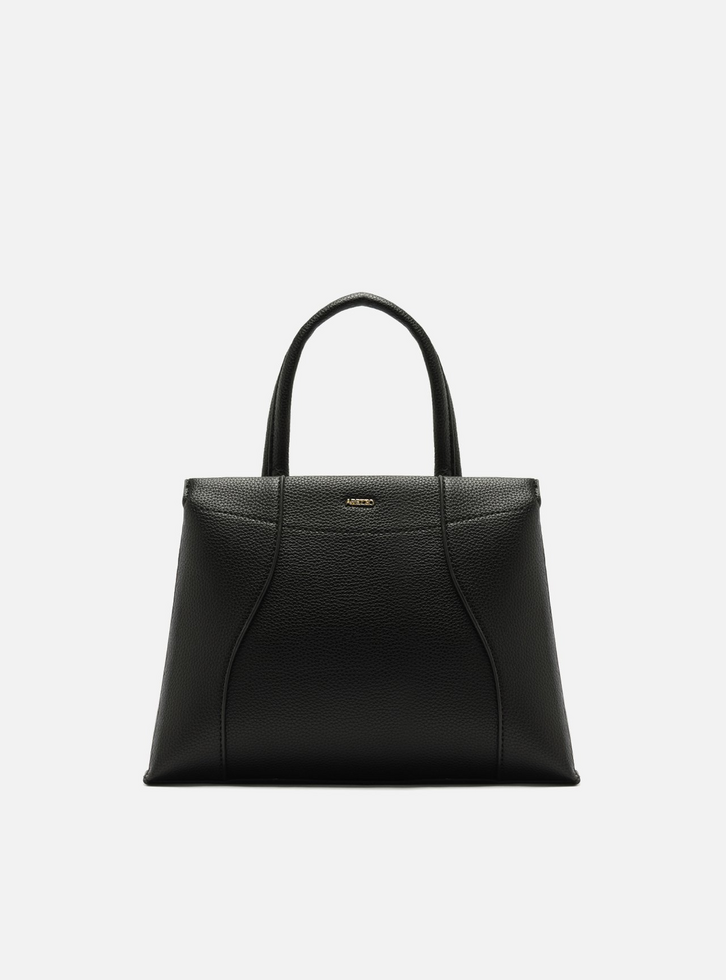 Bolsa feminina tote média preta. O acessório tem formato estruturado, acabamento texturizado e duas alças de mão. Possui amplo espaço interno e fechamento em zíper. Traz detalhe discreto do nome da marca na parte frontal.