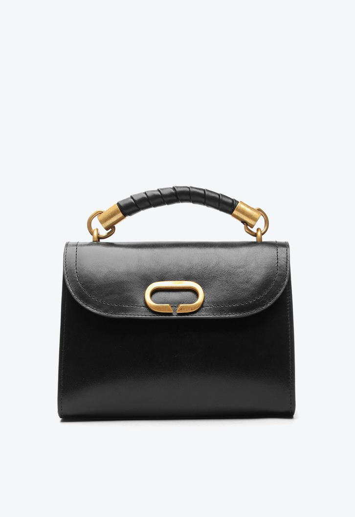 Bolsa em couro média preta com alça de mão. Toque minimalista e moderno para as suas combinações! Essencial para trazer versatilidade no look do dia.