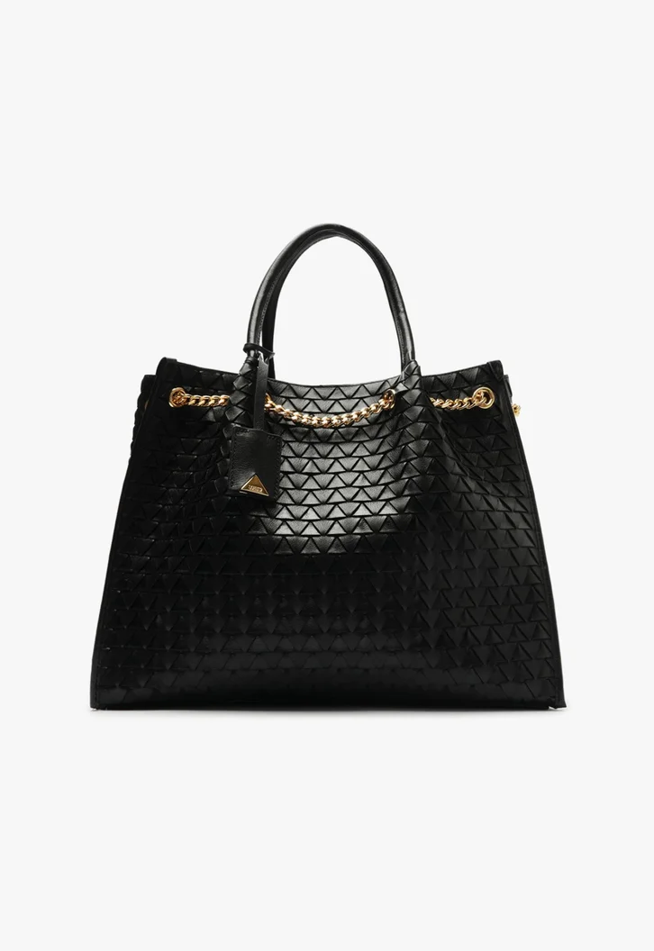 Aposte no estilo com essa tote bag em couro que é absolutamente tudo! O acabamento tramado em formato triangular traz um toque moderno e descolado, perfeito para qualquer ocasião. Com fechamento em ímã, ela é superfácil de usar, e o amplo espaço interno, com divisórias, garante que você tenha tudo organizado na palma da mão. E as duas opções de alças? Uma para aqueles dias casuais e outra para dar um up no look!