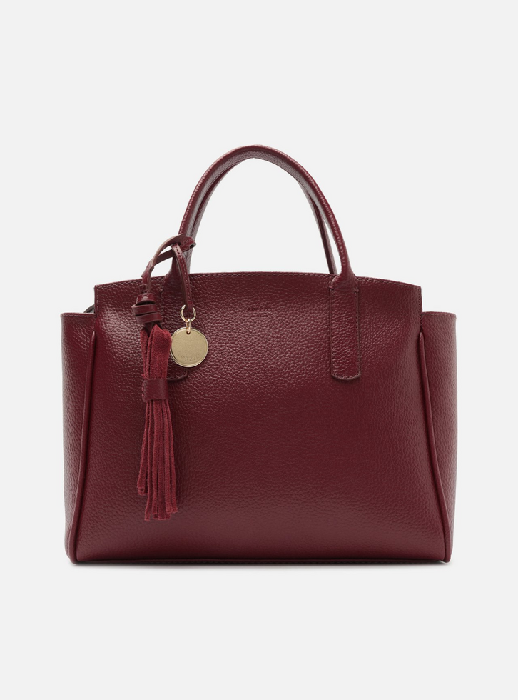 Bolsa tote feminina grande vinho. O acessório tem formato retangular e estruturado, laterais arredondadas e acabamento texturizado. Traz duas alças de mão e alça lateral longa em tira com regulagem. Possui fecho superior em zíper com puxador e acompanha dois bag charms: um em barbicacho de camurcina e outro em metal com o nome da marca. Com interior forrado.