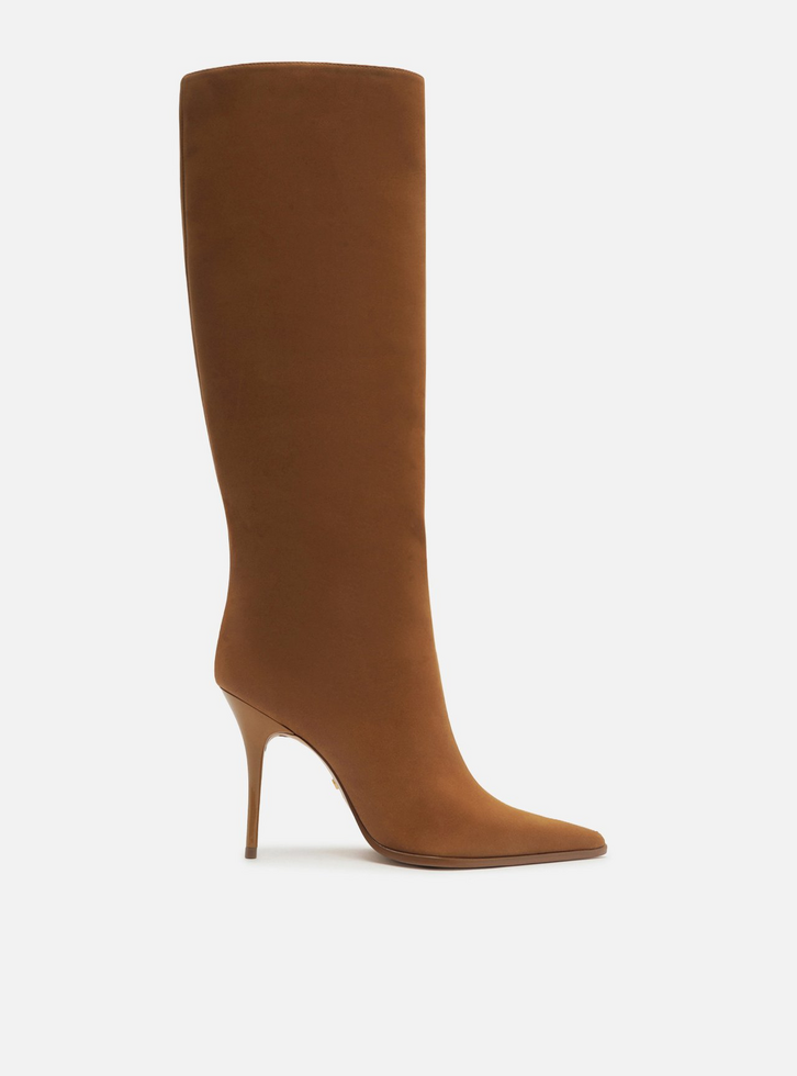 Bota Marrom Bico Fino Cano Longo