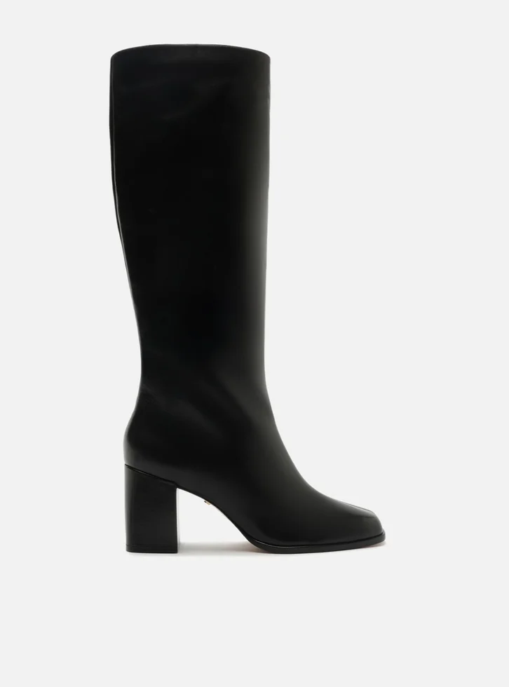 Bota Preta Couro Cano Médio Salto Bloco