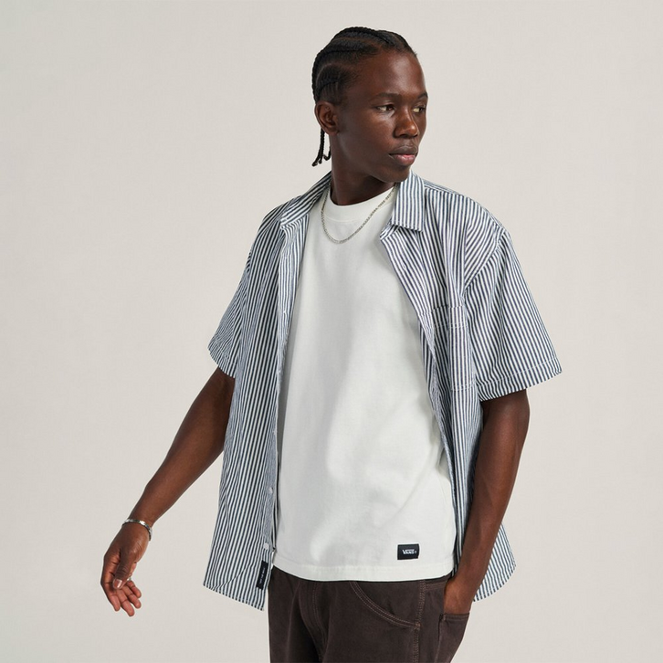 Mantenha o estilo “Off The Wall” do trabalho ao lazer. Uma camisa que transita do trabalho para o casual. Confeccionada com uma mistura de linho e algodão frescos e respiráveis, a Camisa Lawson Stripe Ss Woven White Dress Blues é uma peça essencial no guarda-roupa, perfeita tanto para o skate park quanto para a sala de reuniões. Com um fecho simples por botão frontal e bainha arredondada, o estilo impecável de manga curta é finalizado com bolso frontal na altura do peito, no lado esquerdo e etiqueta Vans®, que remetem ao estilo urbano.