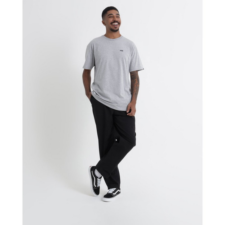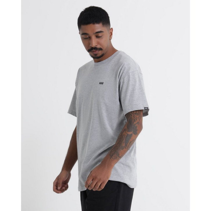 Fundada na Califórnia em 1966, a Vans está envolvida com a cultura rua, artes, música e ligada ao skate e à evolução do esporte, sem perder a essência. Dos clássicos aos modernos, a Vans possui uma enorme variedade de modelos de tênis, roupas e acessórios, sempre mantendo o estilo "Off The Wall". A Camiseta Core Basics Athletic Heather Black de manga curta, possui o logo Vans em "Drop V" discreto, bordado na altura do peito do lado esquerdo. Na cor cinza, apresenta gola canelada, costura reforçada nos ombros e é confeccionada em 100% algodão. Tipo de caimento: clássico. O modelo tem 1,82 e veste tamanho M.