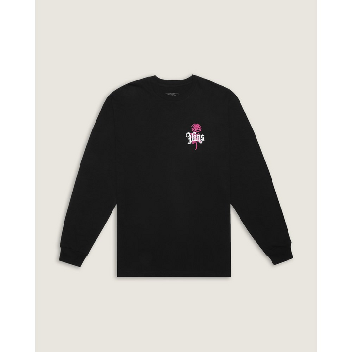 Fique no estilo “Off The Wall” com a Camiseta Grown From The Ground Up Ls Black Aup. Uma camiseta de manga longa e gola redonda, com um visual clássico. O modelo apresenta uma estampa frontal, na altura do peito, no lado esquerdo - de uma arte, com o design da icônica rosa Vans, sobre a assinatura da Vans personalizada. Já nas costas, traz a mesma estampa, centralizada e em tamanho maior. A combinação de gola redonda casual com algodão respirável, torna a peça confortável, para uso diário, seja dentro ou fora das pistas.
