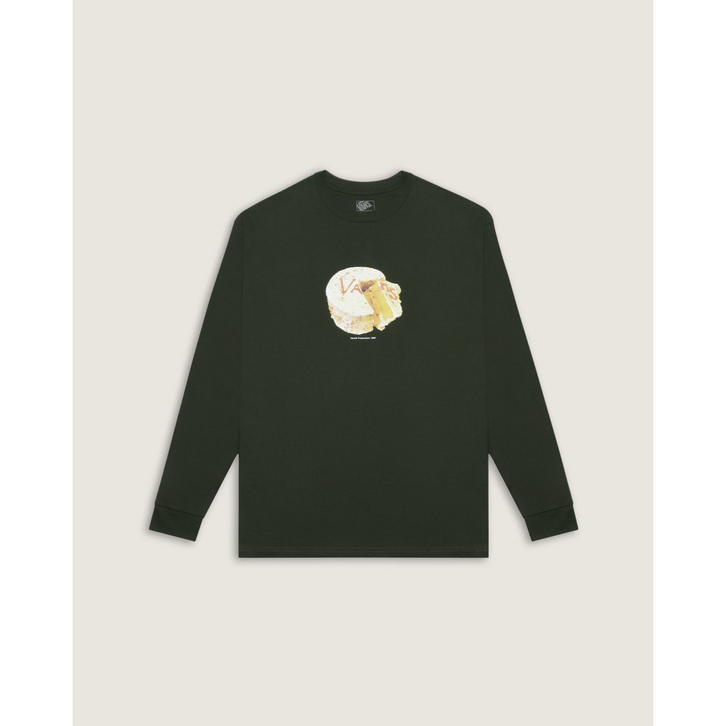 Fique no estilo “Off The Wall” com a Camiseta Ls Caked Dried Kelp. Uma camiseta de manga longa e gola redonda, com um visual clássico. O modelo apresenta uma estampa frontal, centralizada na altura do peito - de uma arte, com um bolo de aniversário com inscrição das iniciais da Vans, com um pedaço de uma fatia cortada. A combinação de gola redonda casual com algodão respirável, torna a peça confortável, para uso diário, seja dentro ou fora das pistas.