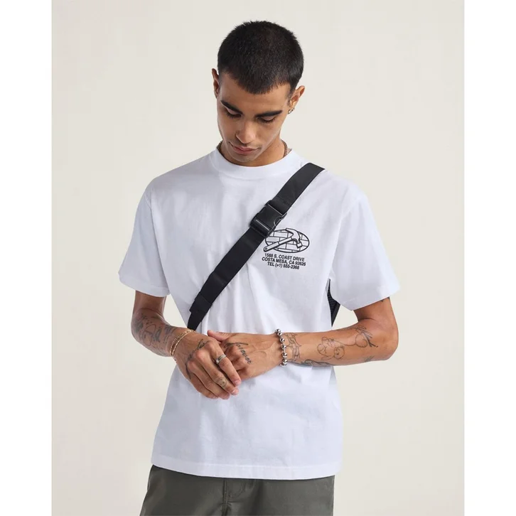 Clássica e estilosa. Uma camiseta clássica de gola redonda homenageia a sede da Vans com um estilo prático. A Camiseta Service Repair Ss White Servicae de manga curta apresenta uma silhueta de estilo casual, perfeita para o dia a dia. O modelo traz estampa frontal e nas costas, com o design de um martelo e inscrições que remetem à uma oficina mecânica fictícia, no endereço da sede da Vans.
