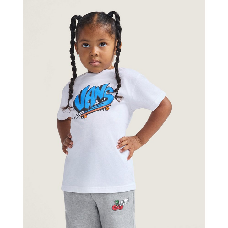 O estilo “Off The Wall” dos pequenos com um toque clássico e descolado. A cultura do skate na Camiseta Ss Vans Sk8 White Infantil é representada de uma forma divertida, com a estampa da assinatura Vans em desenho animado, estilo cartoon, em um skate. Uma camiseta confortável e fácil de usar, ela é feita de tecido ringspun cardado, macio e durável.
