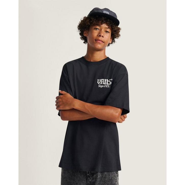 Clássica e descolada. Com mangas curtas para um estilo casual para o dia a dia, a Camiseta Style 001 Ss Black se tornará instantaneamente uma das peças mais desejadas do seu guarda-roupa. A estampa serigrafada de longa duração, com a assinatura personalizada da Vans na parte frontal, na altura do peito, no lado esquerdo - e o alfabeto “Off the Wall" nas costas, adicionando um toque streetwear para um clássico Vans.