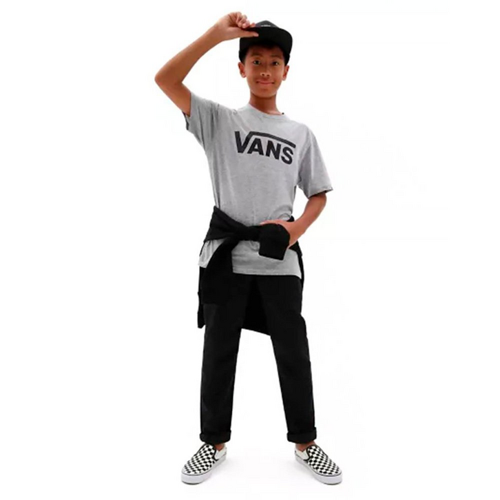Fundada na Califórnia em 1966, a Vans está envolvida com a cultura de rua, artes, música e ligada ao skate e à evolução do esporte, sem perder a essência. Dos clássicos aos modernos, a Vans possui uma enorme variedade de modelos de tênis, roupas e acessórios, sempre mantendo o estilo "Off The Wall". A Camiseta Vans Classic Infantil Athletic Heather Black de manga curta, possui o logo Vans em "Drop V" estampado na altura do peito. Na cor cinza, o modelo infantil traz etiqueta Vans aplicada na manga, gola canelada, costura reforçada nos ombros e é feita de 100% algodão. Tipo de caimento: custom.