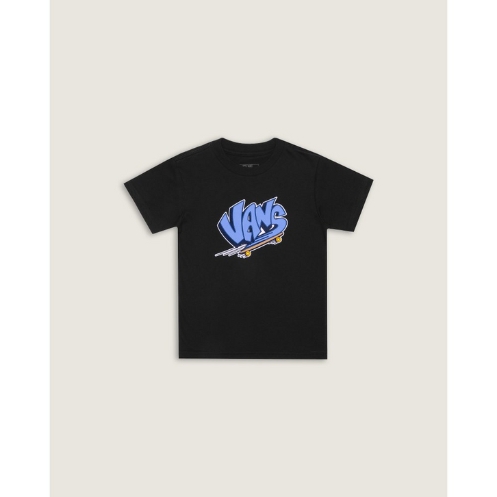 O estilo “Off The Wall” dos pequenos com um toque clássico e descolado. A cultura do skate na Camiseta Vans Sk8 Ss Black Infantil é representada de uma forma divertida, com a estampa da assinatura Vans em desenho animado, estilo cartoon, em um skate. Uma camiseta confortável e fácil de usar, ela é feita de tecido ringspun cardado, macio e durável.