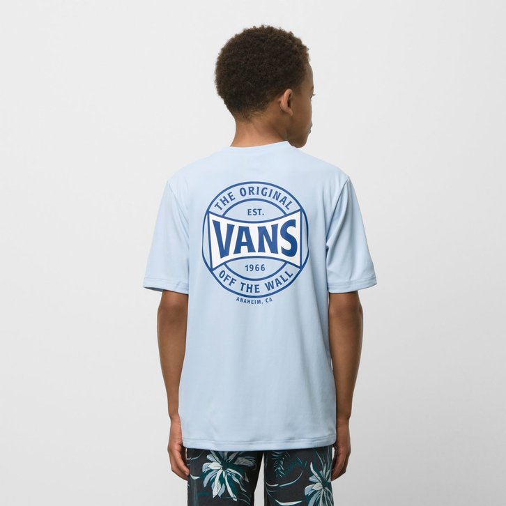 A Kids Sun Shirt é uma camisa 100% poliéster feita para os dias passados sob o sol. Com proteção solar FPU 50 para manter a pele segura dos raios agressivos, esta camisa leve, que absorve a umidade, tem uma fabricação elástica em elastano de 4 vias, e icônicos gráficos do logotipo no peito esquerdo e nas costas. Um caimento descontraído ajuda esta camiseta de manga curta a ficar confortável o todo o dia.Aproveite a Vans Black Friday e adquira já seu novo produto Off The Wall