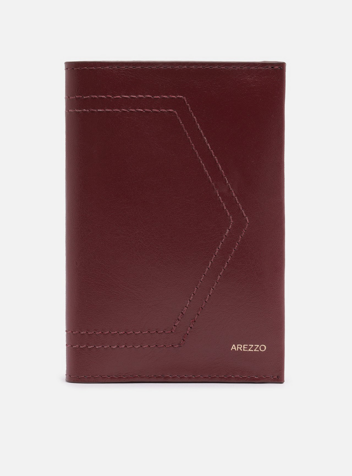 Carteira feminina média vermelha de couro. O acessório tem formato retangular e é dobrável. Parte interna na cor da carteira com porta-cartões. Com contorno em costura pesponto, nome da marca na capa e costura geométrica.