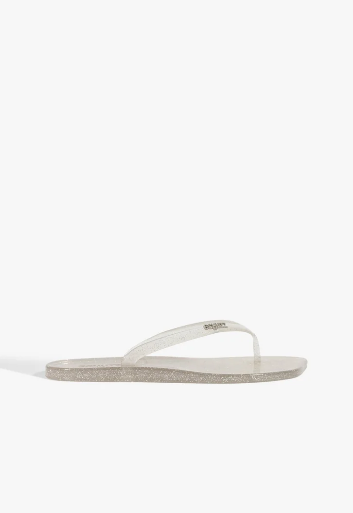 O Chinelo Jelly Glitter Prata é a peça perfeita para adicionar um toque de leveza aos seus dias de sol! Ele une a nostalgia do jelly com a tendência do glitter, sendo o companheiro ideal para a praia, piscina ou aquele passeio casual de verão.
