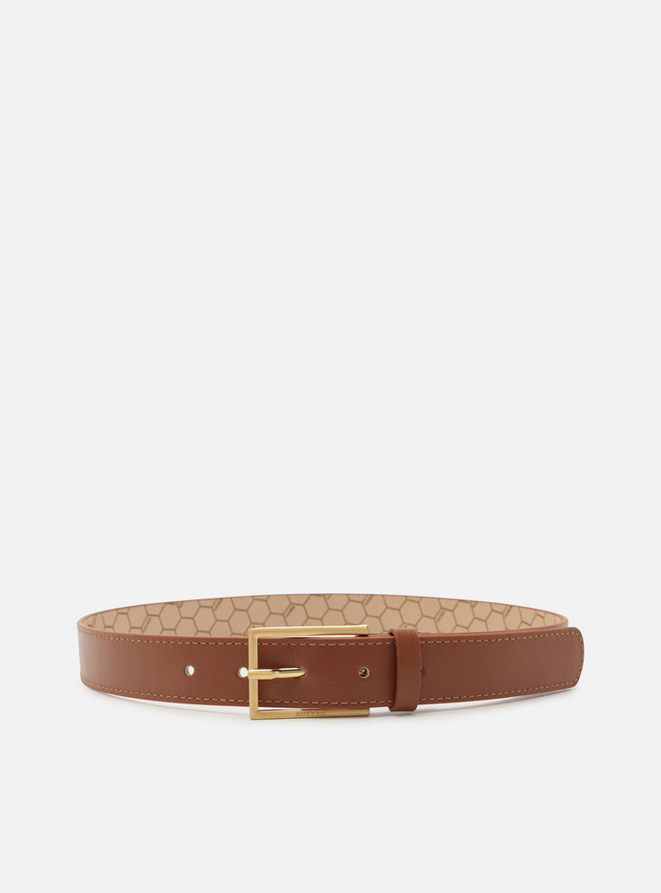 Cinto feminino marrom de couro em tira média. O acessório tem fivela metálica com formato retangular e nome da marca. Parte interna em material com monograma Arezzo. Para uso na cintura, é ajustável e tem passador em tira de couro.