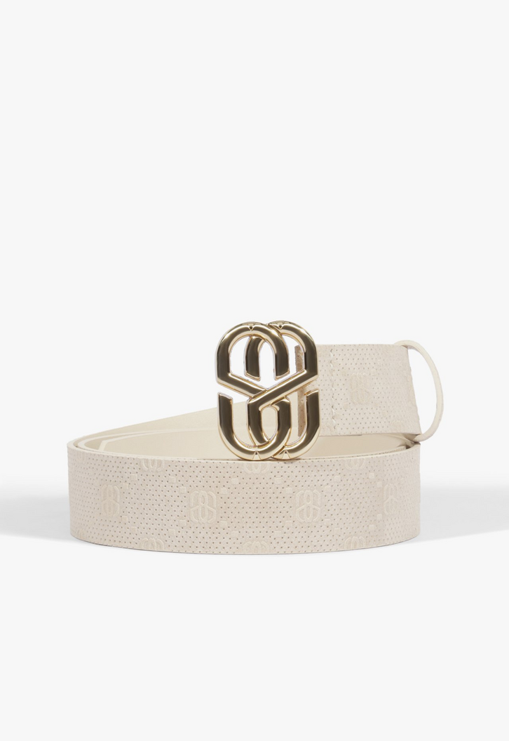 O cinto é aquele acessório capaz de transformar o look! Nesta versão, aparece com a charmosa e impactante fivela metalizada de SS – detalhe perfeito para as Schutz Lovers! A estampa de monograma traz um toque trendy ao modelo, reforçando a logomania de uma forma superelegante! Sabe aquela escolha certeira para deixar suas produções mais interessantes? É esse cinto branco de couro. Aposte! Dimensões: 3,5 CM. P:85 cm | M: 90 cm | G: 95 cm.