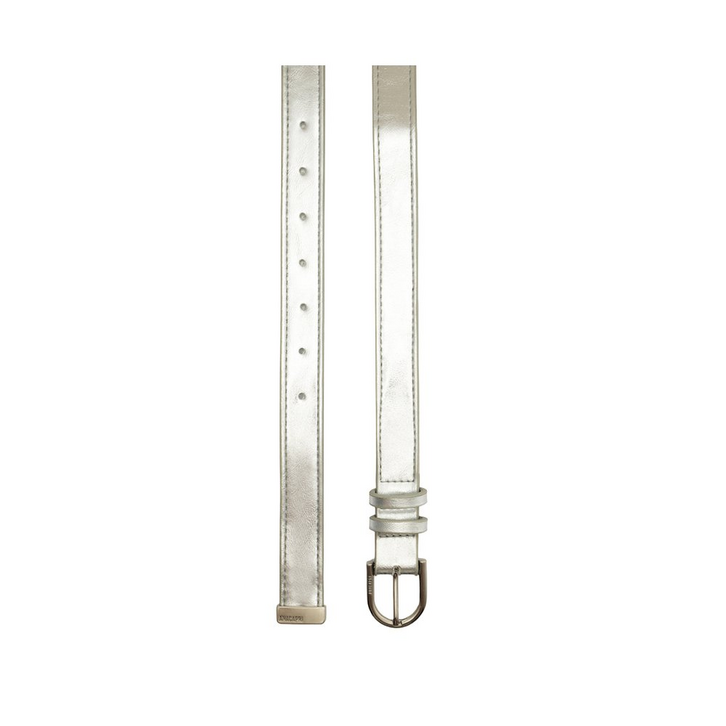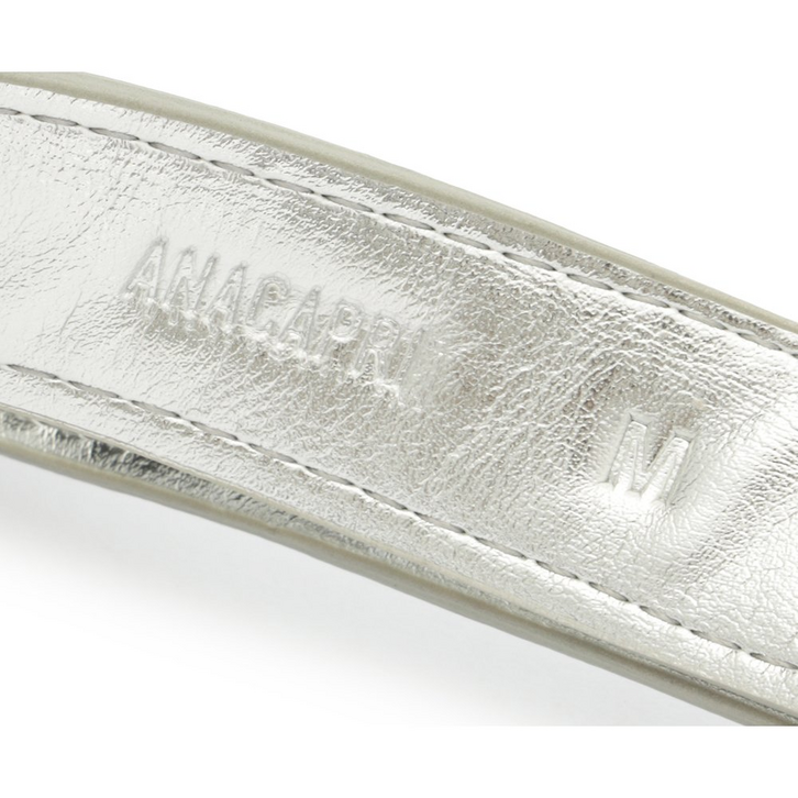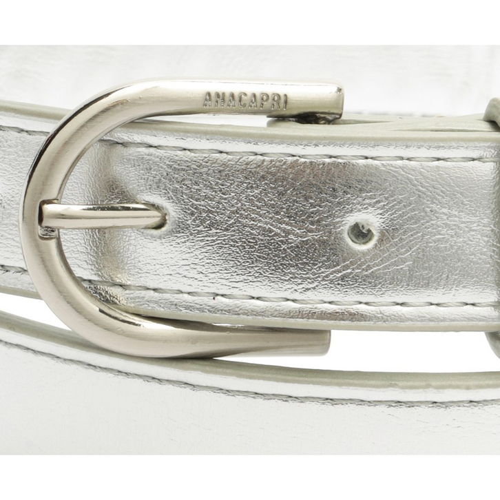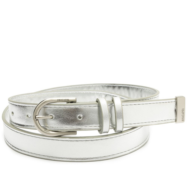 Cinto Valentina fino, com fivela metálica, na cor prata. O acessório no tamanho P de material similar ao couro, possui fecho regulável por fivela redonda metálica moderna, com assinatura personalizada Anacapri e passador forrado no mesmo material do cinto. Detalhe para contorno em pespontos de mesmo tom por toda a peça. Para uso na cintura, o modelo é regulável, permitindo fácil ajuste. Apresenta nova assinatura exclusiva Anacapri, aplicada na tira, em placa retangular de metal escovado.