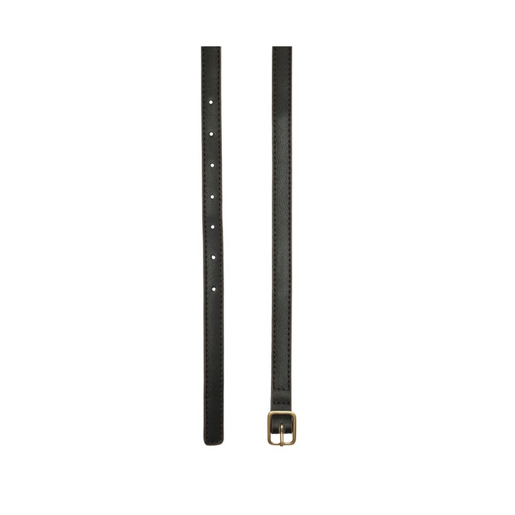 Cinto fino Helena, na cor preta. O acessório no tamanho P de material similar ao couro, possui fecho regulável por maxi fivela metálica, com assinatura personalizada Anacapri em carimbo metálico e passador forrado no mesmo material do cinto. Detalhe para contorno em costura de pespontos de mesmo tom por toda a peça. Para uso na cintura, o modelo é regulável, permitindo fácil ajuste. O cinto possui tamanho único de 16mm.