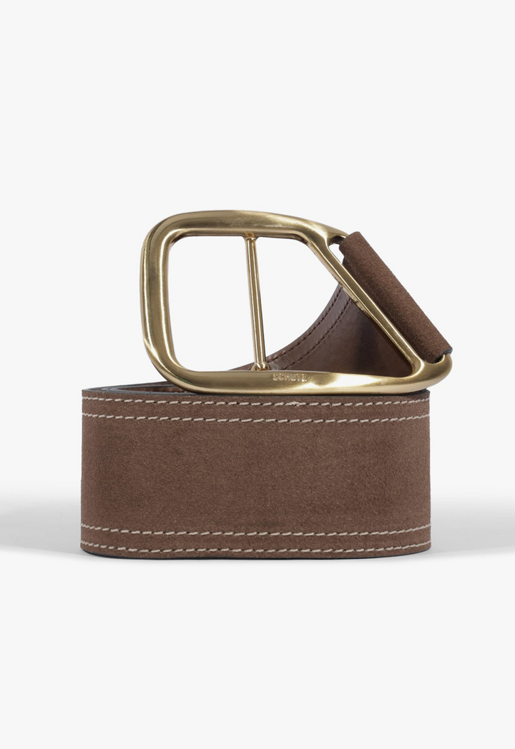 Os cintos femininos vão além de um acessório funcional para ser aquele toque de estilo que faz a diferença no look! Este modelo se destaca por sua elegante fivela dourada em shape orgânico, trazendo um visual autêntico e sofisticado. O acabamento em camurça com costura traz um charme boho a este cinto marrom-escuro. Aposte! Largura do cinto: 6 cm