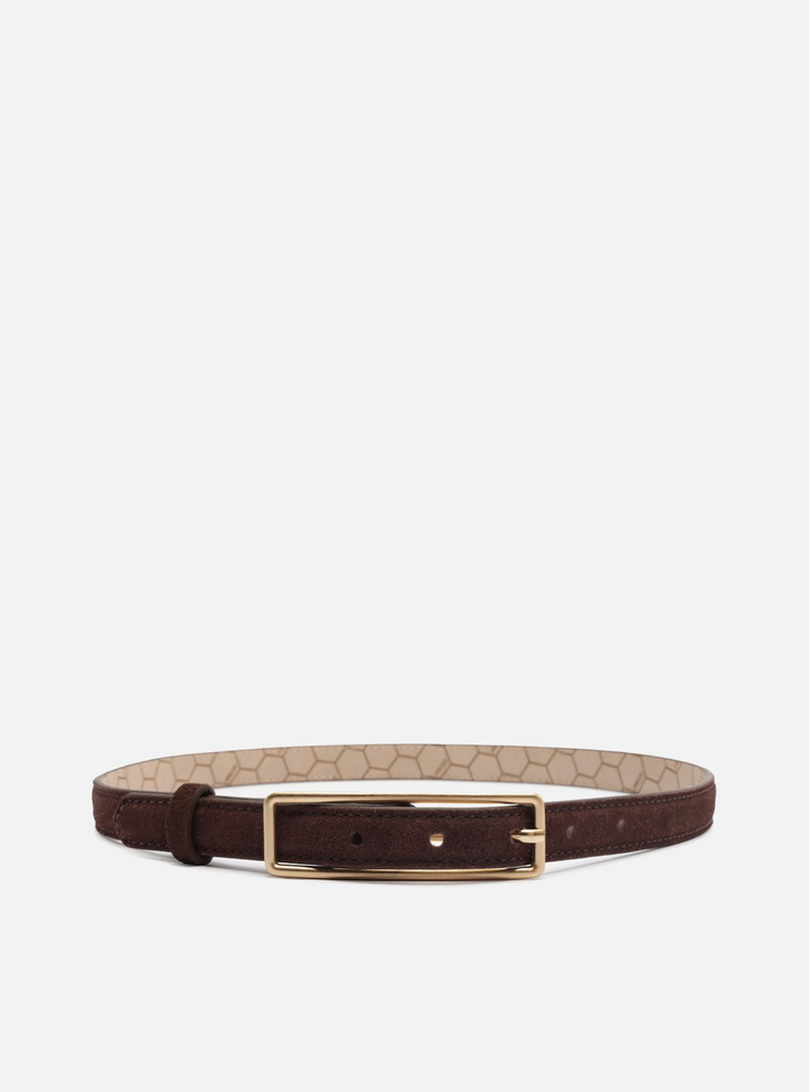 Cinto feminino marrom de couro em tira média. O acessório tem fivela metálica com formato retangular e nome da marca. Parte interna em material com monograma Arezzo. Para uso na cintura, é ajustável e tem passador em tira de couro.