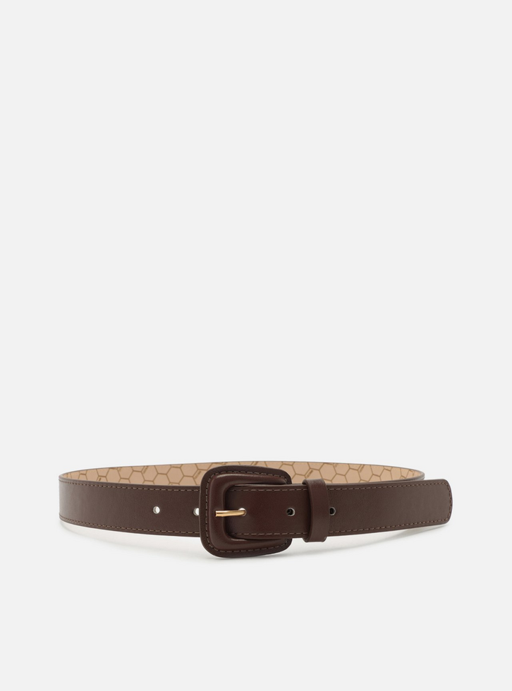 Cinto Marrom Couro Fivela Quadrada Revestida