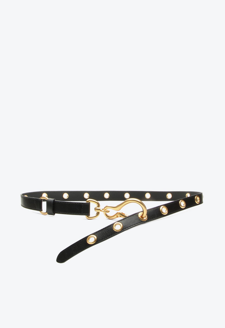 Cinto Melinda fino em napa. Com detalhes e fivela dourados, o modelo é aquele toque final que transforma o visual com elegância. Sofisticado e atemporal, ele adiciona um brilho sutil às produções, valorizando desde vestidos fluidos até peças de alfaiataria. Um acessório versátil e indispensável para complementar os looks de verão com estilo.