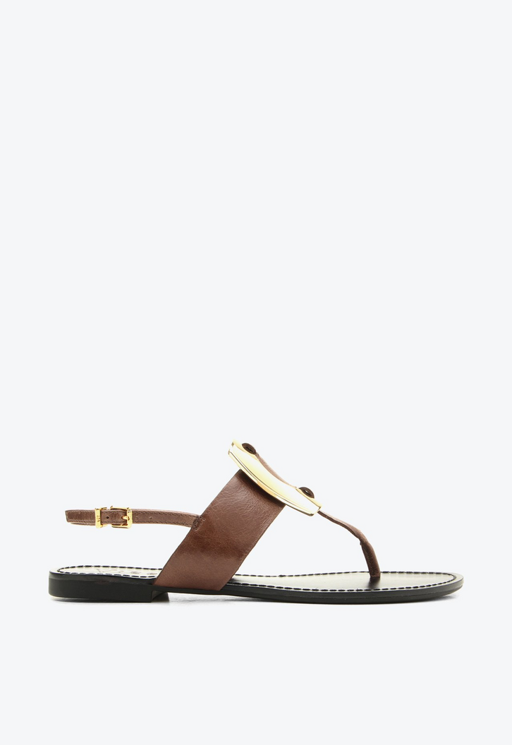 Flat Belluno marrom. Feita em couro, essa flat une sofistica��o e conforto em um design atemporal. O adorno maxi metalizado frontal garante um toque de modernidade, enquanto a tira larga valoriza o p� e traz firmeza ao caminhar. Pr�tica e vers�til, � a escolha ideal para acompanhar produ��es elegantes e casuais com o mesmo charme.