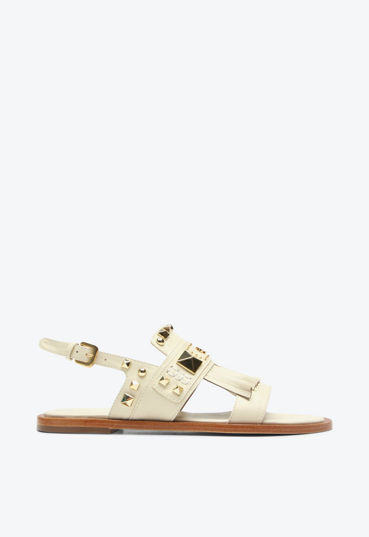 A flat Haia bege é a escolha ideal para compor produções sofisticadas com um toque de ousadia. O design em couro ganha destaque com a aplicação de studs dourados em diferentes formas, criando um visual impactante e moderno que conversa com as principais tendências da temporada. O detalhe de franjas adiciona movimento e personalidade ao modelo, ela transita com facilidade entre looks urbanos e produções mais refinadas, elevando o estilo com autenticidade.
