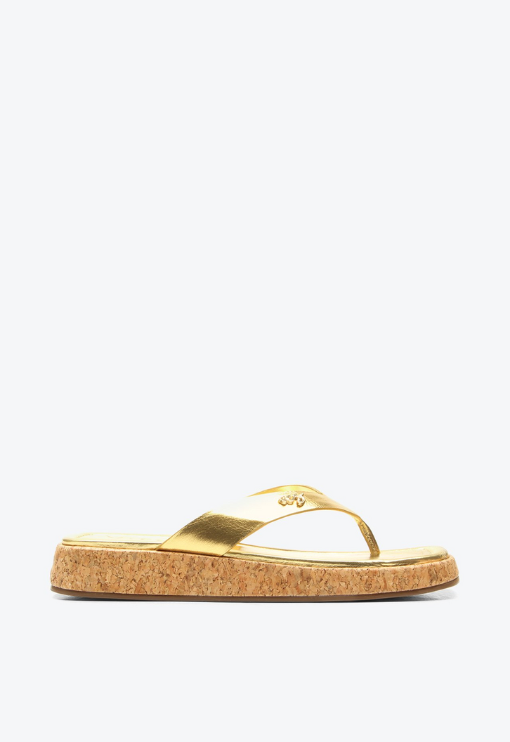 Flat Hawaii dourada. Esta flat combina leveza e estilo em um design fresh e contemporâneo. O brilho do verniz se destaca sobre a base em cortiça natural, criando um contraste sofisticado e cheio de personalidade. A palmilha super comfy garante conforto durante todo o dia, enquanto a assinatura VCZ metalizada adiciona um toque exclusivo. Perfeita para complementar looks casuais ou para dar destaque a produções descontraídas com muito estilo.