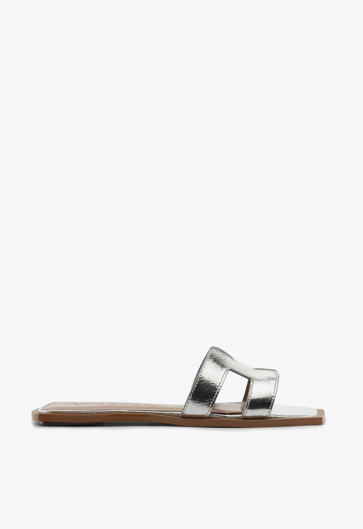 Flat em couro prata com tiras. Modelo clássico e atemporal, essa flat é indispensável para curtir a temporada mais quente com muito estilo e sofisticação. Seu design versátil permite combinar facilmente com looks variados, trazendo conforto e elegância para produções casuais. Perfeita para quem busca praticidade sem abrir mão do charme em dias de calor.