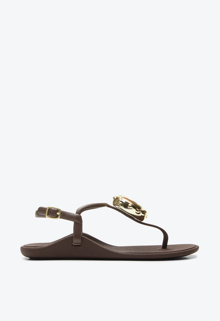 Um modelo leve e confortável, ideal para quem busca praticidade sem abrir mão do estilo. No estilo sandália, possui aplicação frontal metalizada que acrescenta um toque de sofisticação e glow, tornando-a perfeita para destacar o look. Versátil, combina facilmente com saias, vestidos, shorts ou calças leves. Seu design atemporal e confortável transforma a flat em um must have do guarda-roupa, garantindo frescor, charme e personalidade!