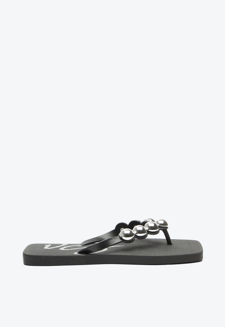 Flat em PVC preto, com tira e detalhes metalizados. Com um recorte frontal quadrado super moderno, essa flat traz sofisticação para a temporada. Se destaca pelos detalhes prateados, que transforma qualquer look. Ideal para quem busca um estilo leve porém marcante.