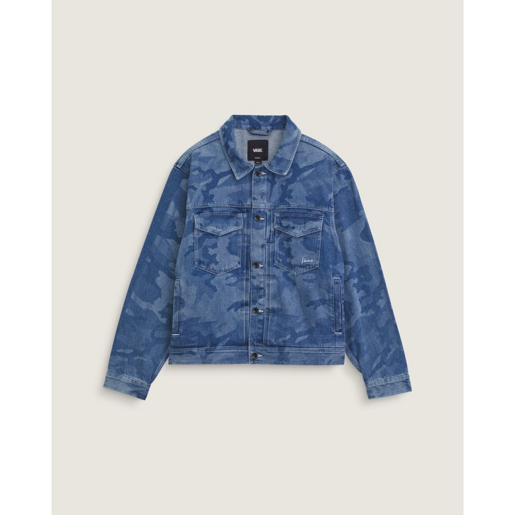 Jaqueta Vans Camo Denim Trucker Stone Wash Blue