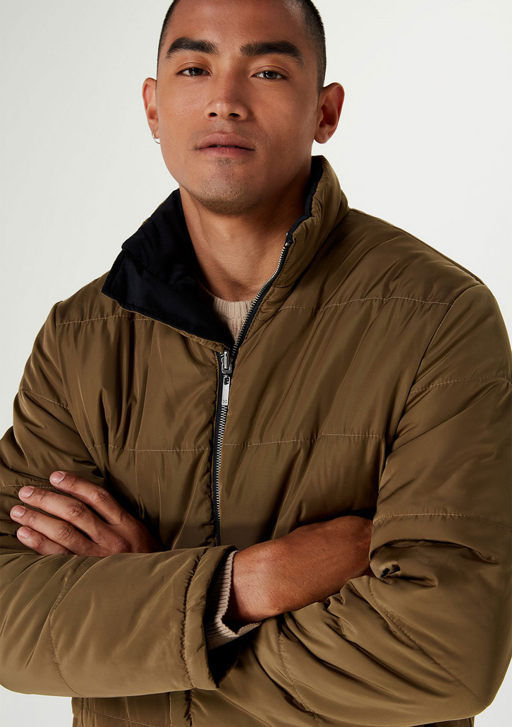 Jaqueta masculina comfort puffer elaborada em nylon dupla face, um material resistente e durável com excelente conforto térmico. Conta com duas opções de uso, sendo um lado brilhoso e outro fosco, garantindo versatilidade para o seu dia a dia.