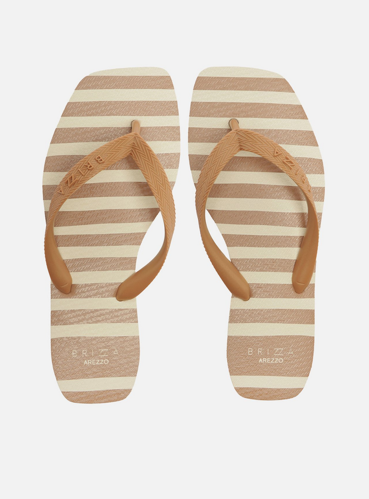 Kit Chinelo de Dedo Marrom Listrado Square e Pouch
