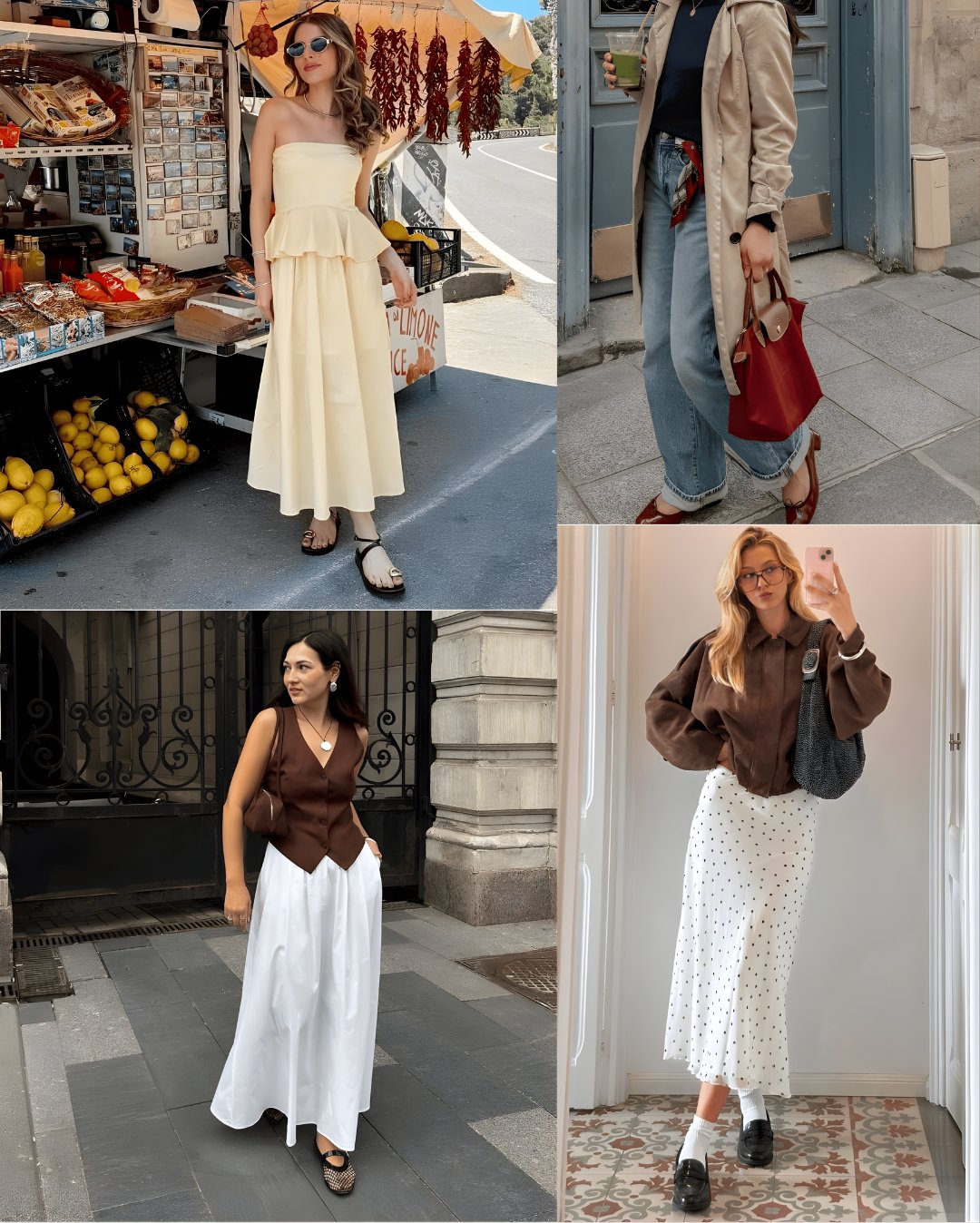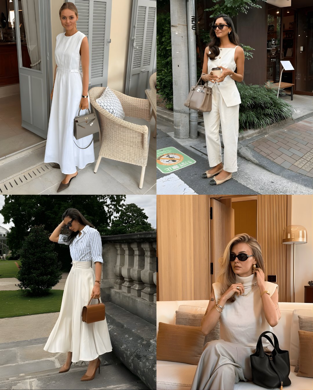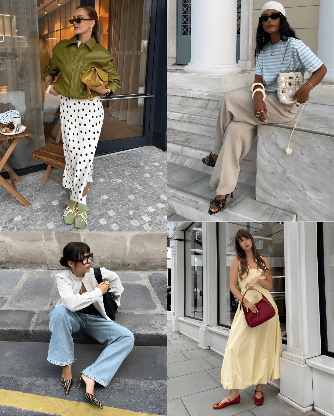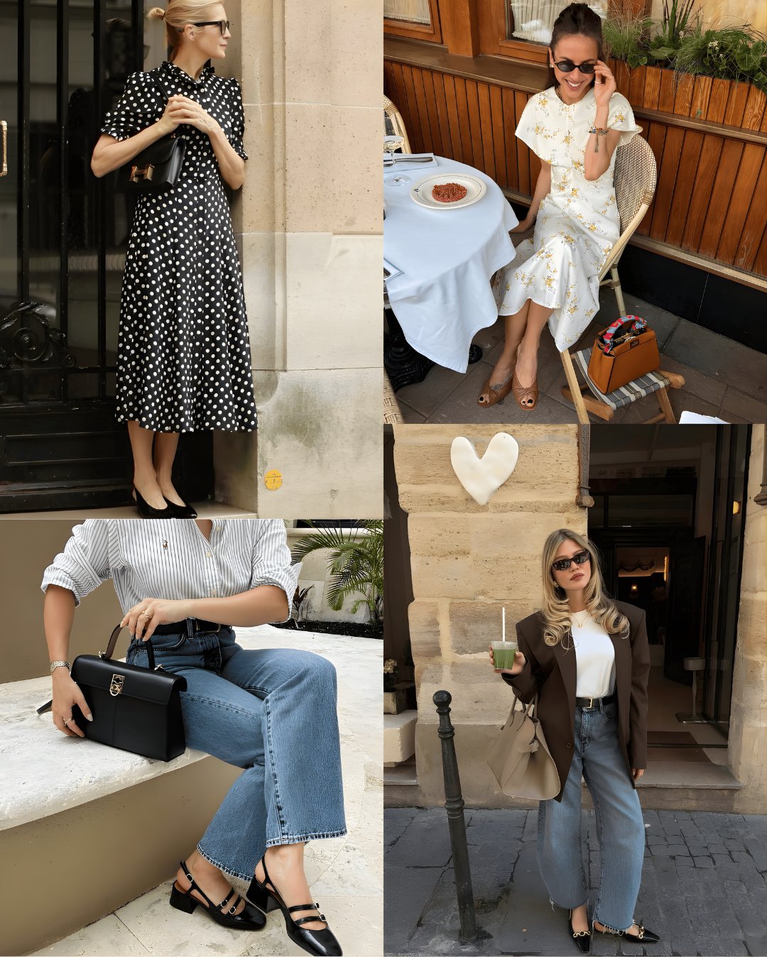 Nos sapatos, o caminho é igualmente seguro: scarpins, slingbacks ou saltos médios entram como aliados. São modelos que trazem sofisticação sem esforço, aquele visual que funciona sempre e exatamente por isso encanta.