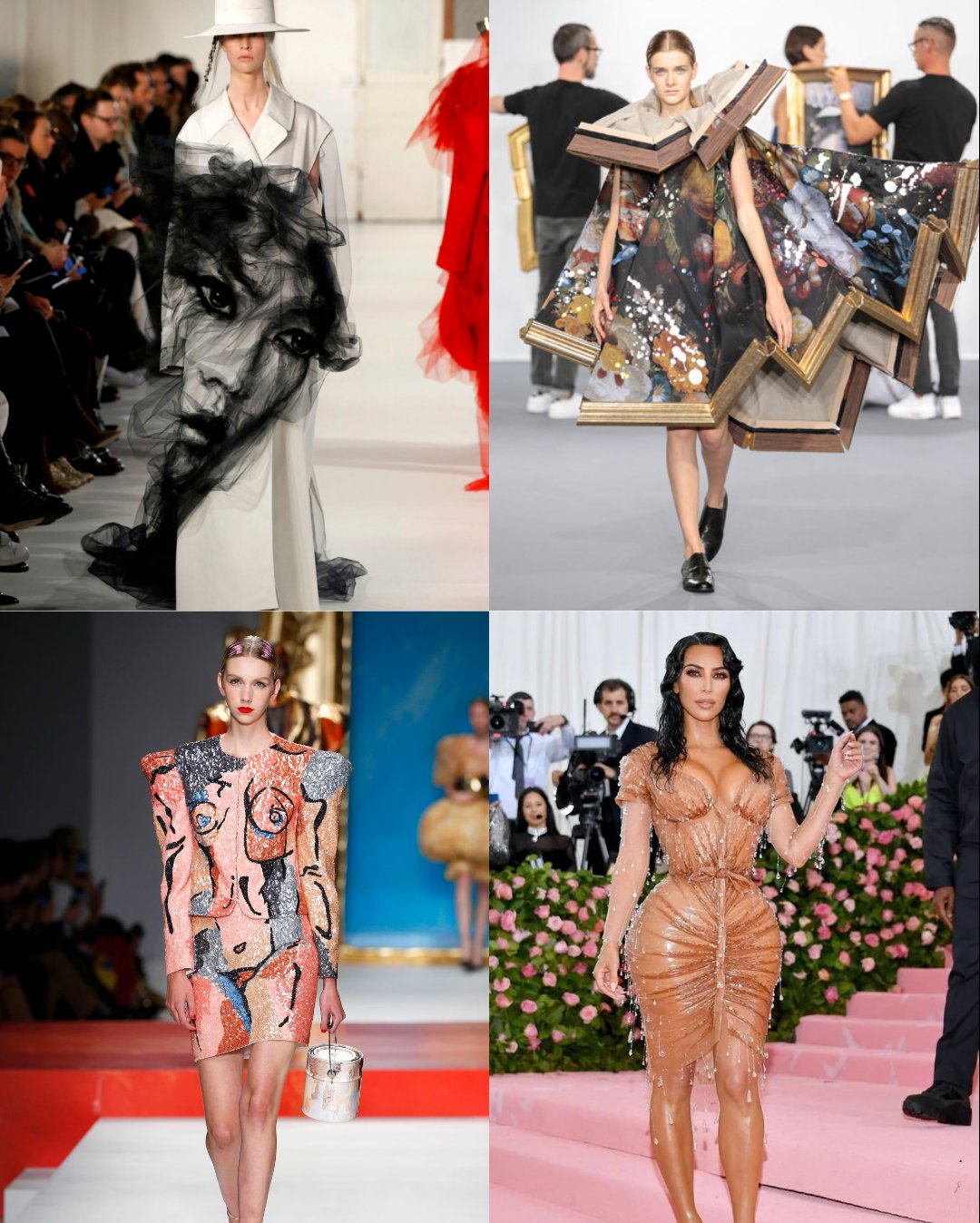 Uma referência histórica que captura perfeitamente o espírito do tema é a coleção “Wearable Art” de Viktor & Rolf, apresentada na Alta-Costura A/W 2015/2016. Naquele desfile, quadros emoldurados se transformavam lentamente em vestidos no corpo das modelos.