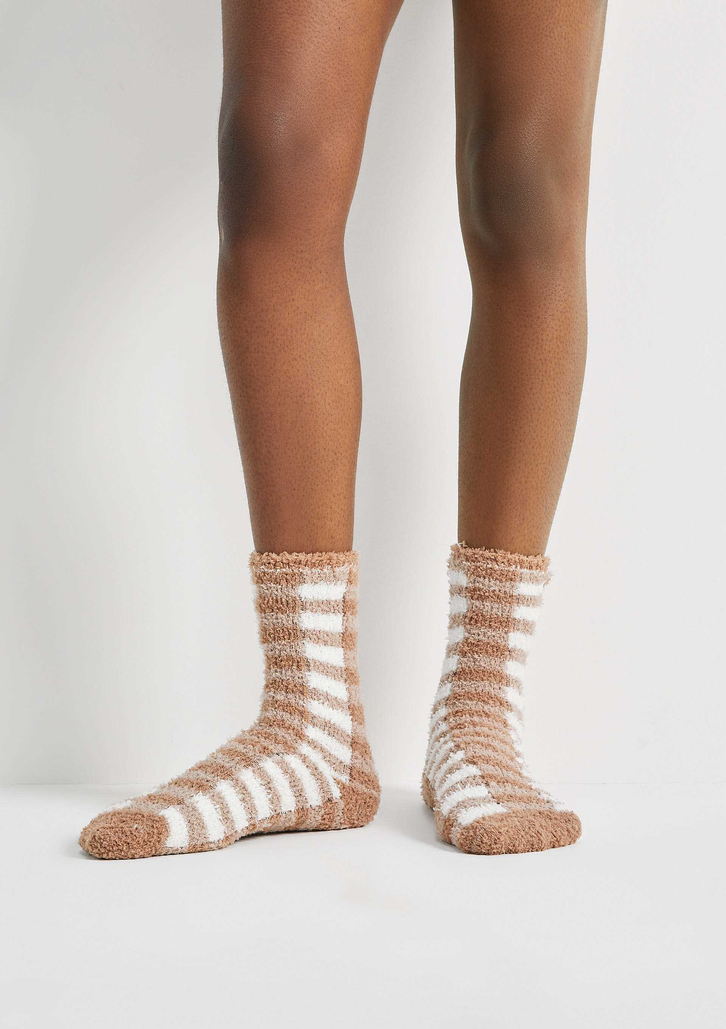 Meia unissex estampada cano longo, confeccionada em tricô de fio chenille e jacquard, formando desenhos. O chenille é um fio bem encorpado e texturizado de fibra sintética que proporciona uma meia quentinha e confortável para os dias mais frios.