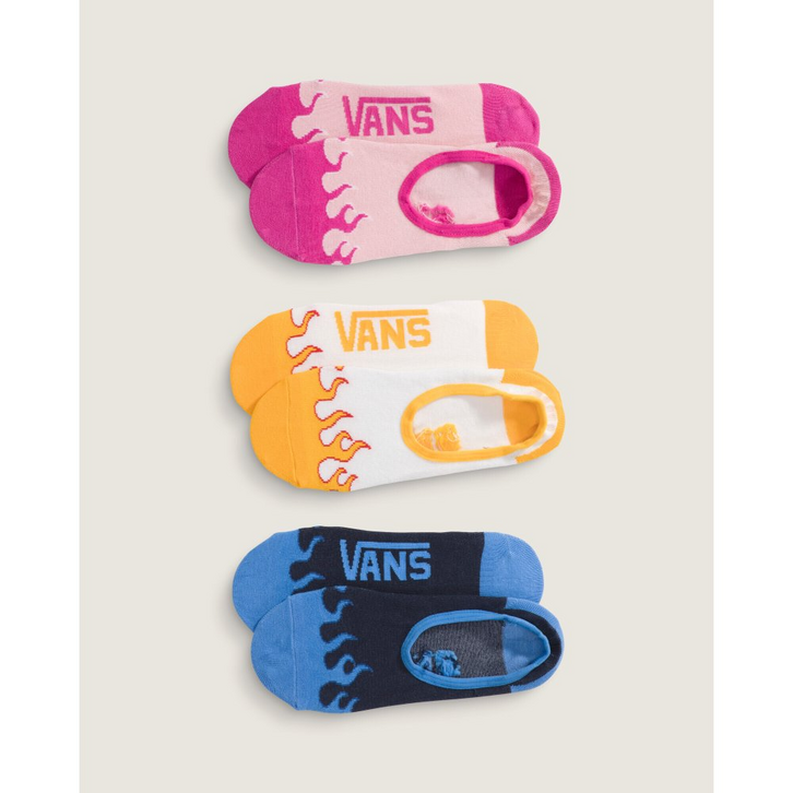 Meias invisíveis feitas para combinar com os Vans Classic Slip-Ons. A Meia Fuego Canoodle Tranquil Blue agrega estilo para todas as ocasiões. O pack possui três pares de meias soquetes em tecido - estilo sapatilhas clássicas - em tons coloridos, projetadas para permanecerem escondidas sob os Vans Slip-Ons. A construção em malha plana e os detalhes ousados trazem conforto e expressão a cada passo, mesmo quando ninguém os vê. Traz assinatura Vans em “Drop V” estampada na sola, com detalhes das icônicas chamas Vans.